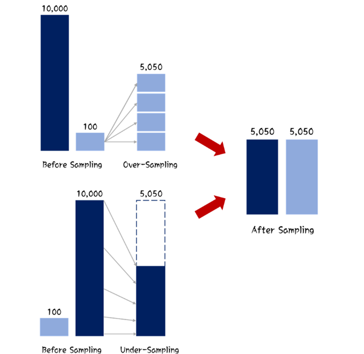 : 오버샘플링과 언더샘플링의 두 기법을 조합하여 사용.